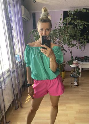 Продам блузку зеленого цвета от Olko, размер s-м, свободного кроя. Можно носить как с закрытыми плечиками и опущенными, снизу на резинке. Отдам при 100 гн