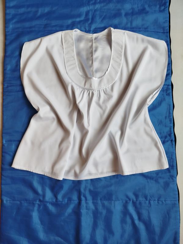 Качественная и очень приятная блузка большого размера. Снаружи матовая, с изнанки атласная; не знаю как этот материал правильно называется. Состояние нового. Бирок никаких нет. Полагаю шилось на заказ. Не просвечивает. Размер смотрите по замерам. Есть ещё батальные вещи и блузки тоже. замеры: плечи 58 см под мышками ПОГ 66 см низ полуобхват 78 см рукав 53 см длина 63 см