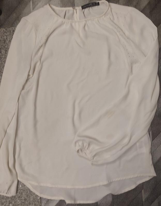 Блуза с легкой, воздушной ткани С декором-металла.почки Нюанс фото: 8,9(на рукаве пятна) Маломерка, подойдет на размер XS