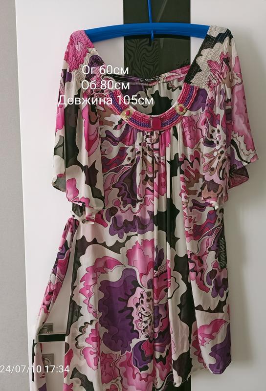 Туніка. Блузка. Ткань тонкая, тапа шифон.Расширяется до низа от груди.,можно на большие бедра.Прикрывает руки. Ог 60см Об 80см Длина 105см.