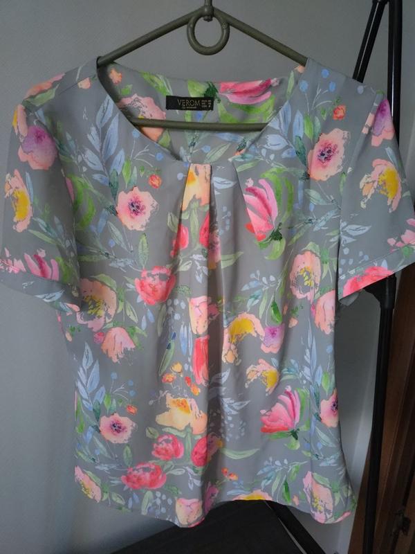 Невероятно красивая яркая блуза в цветах с коротким рукавом в идеальном состоянии.