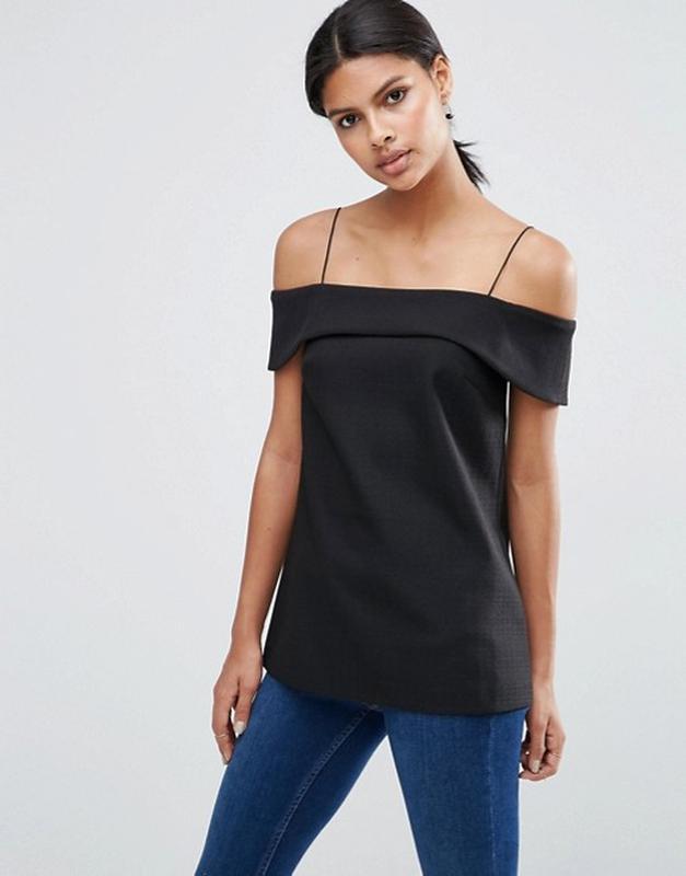 Топ с открытыми плечами от английского бренда Asos. По спинке застегивается на молнию и крючок. Ткань плотная, не тянется. (3032) Размер: 8/36 Полуобхват груди: 44 см Полуобхват талии: 42 см Полуобхват бедер: 51 см Длина изделия: 65 см Состав: 100% полиэстер