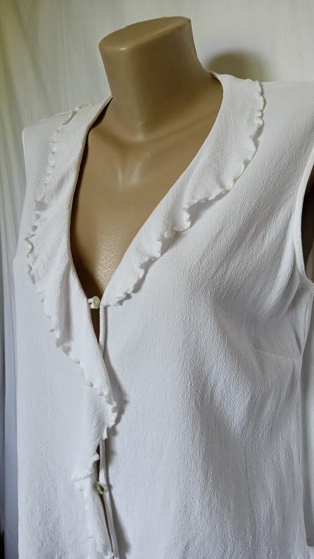 белая,вискоза100%,оборка по горловине и к низу,длина блузи58, пог54 -56,