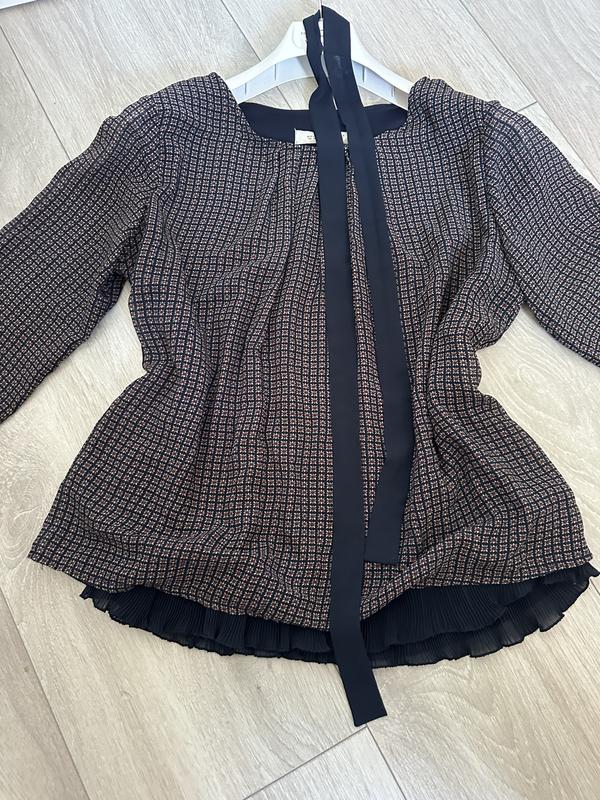 Продам блузку в хорошем состоянии,размер 40/46, плечи-38см.Пог-53см.Длина-58см.Длина рукава-56см.
