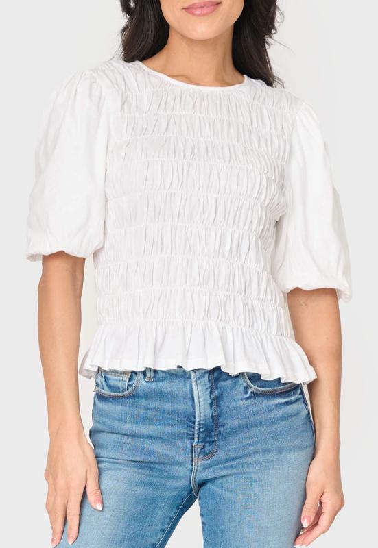 Белая жата блуза с объемными рукавами, плечи 40, ПІГ 48-52, ПИТ 48-52, рукав 40, длина изделия 59.