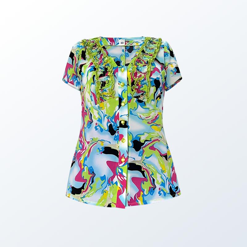 Нежная блуза с абстрактным принтом и рюшами. розродаж!