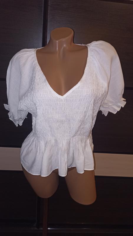 Нежная вещичка для стильной красотки. Спереди несколько рядов резинок. Красивые рукавчики. Ткань жатка. Новая, остаток с магазина. ОГ 94-112 см ОТ 90-102 см Рукавчик от горловины 31 см Длина 48 см