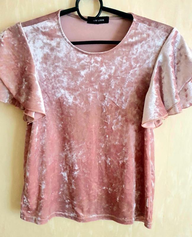 Бархатна блуза гарного кольору пильної рози Їде на розмір С Довжина 55 см ПОГ 41 см В составі є еластан, трохи тягнеться