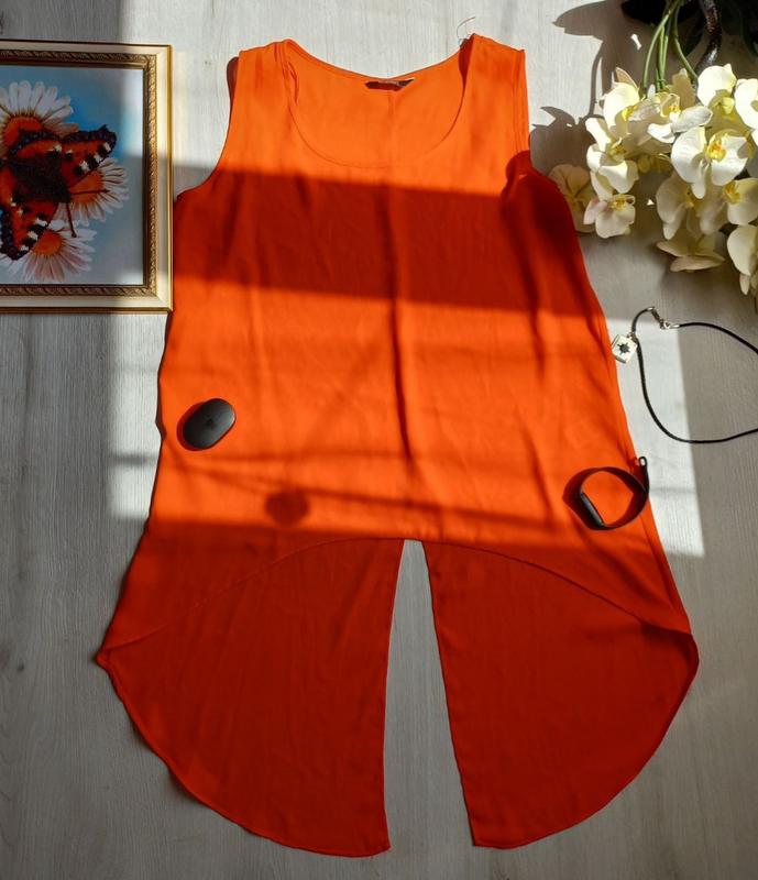 Топовая блузка блуза майка удлиненная спинка яркая оранжевая блуза неон под загар супер тр...