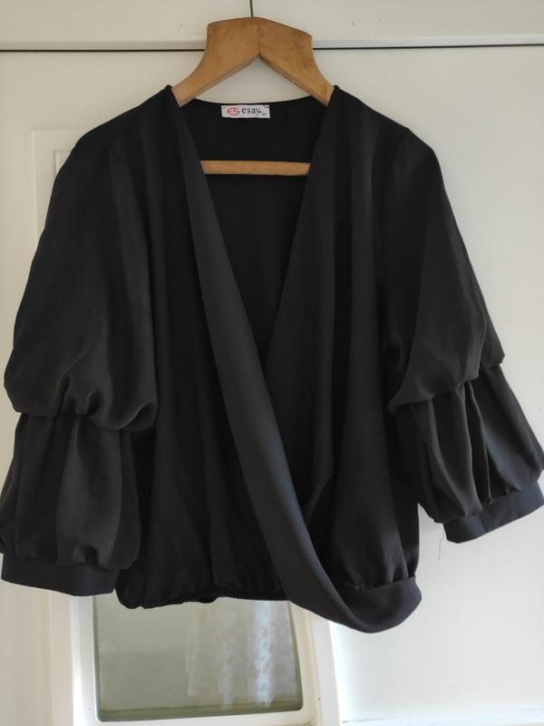 Блузка с красивым ярусным рукавом.Производитель-Турция.Состав смотрите на последнем фото.Купила себе,так и не оделнула ни разу,новая. Пог-54 Полухват по резинке снизу, то будет талия, а потому блузка укороченная-39-55(резинка) Дов.блузки-56 Дов.рукав от горловины-58 Ширина спинки-39.