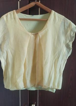 блуза светло желтого цвета, основание трикотаж, сверху шифон, размер 50, состояние идеально