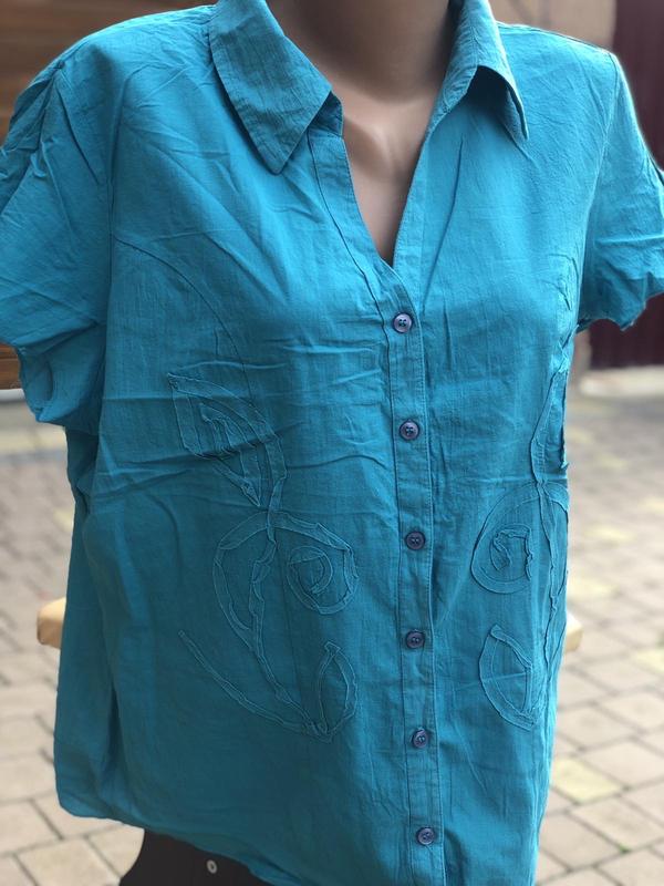 Свободный крой, ткань хорошего качества приятная на ощупь, легкая и комфортная Замеры: Длина-68 Плечи-41 см Длина рукава-17 см Полуобъем груди-61 см