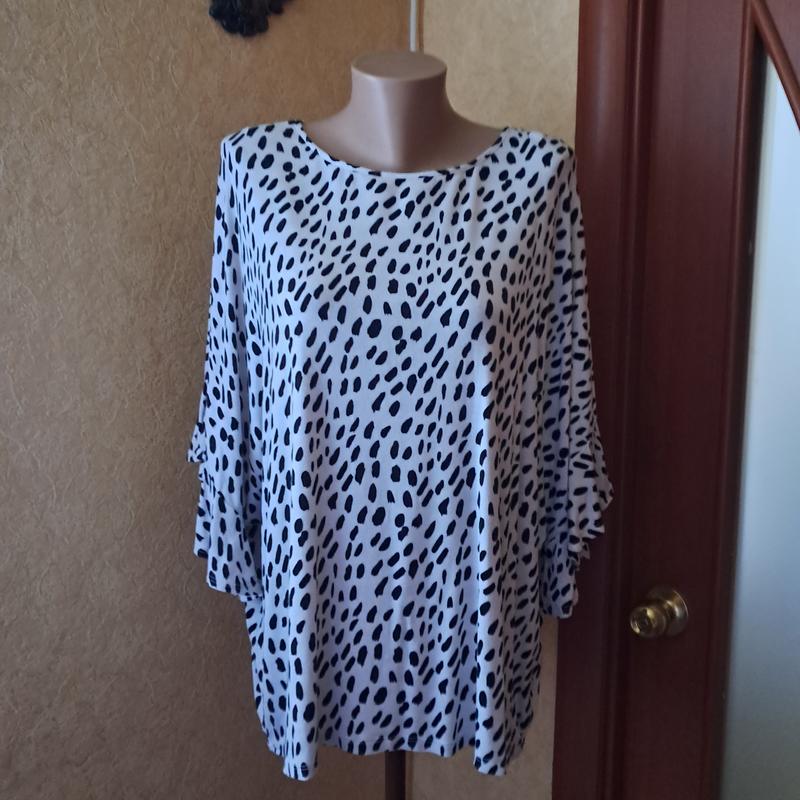 Вискозная,трикотаж На пышную красавицу. ядлина 70,Длина плеча +рюша 45см, ширина в грудях73,низ63.