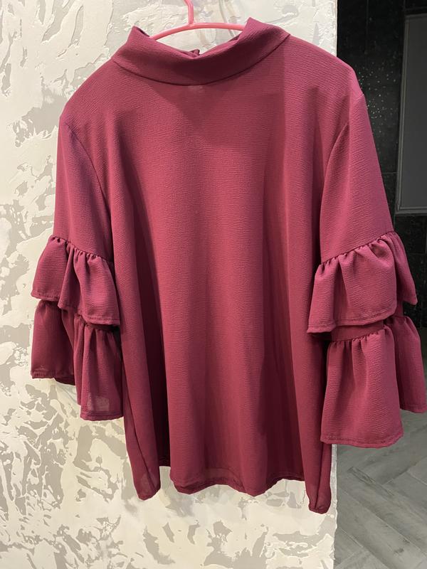 Блюза цвет бордо, с рюшами на рукавах Свободного кроя Размер СМ Л