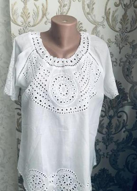 Красивейшая блуза Размер М Длина 70 см Пог 50 см Рукав 27 Состав: 100% хлопок Доставка: Предоплата на карту, возврата, обмена нет