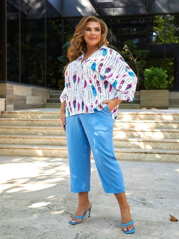 Блуза Блуза вільного крою з натуральної дихаючої тканини Ціна: 740 Розміри: 50-56, 58-64 Тканина: штапель Штани штапель Ціна: 740 Розміри: 50-52, 54-56 Ціна: 840 Розміри: 58-60, 62-64 Тканина: штапель Штани на резинці FL
