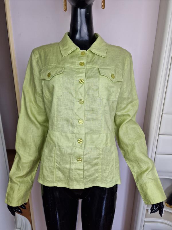 Продается элегантная женская блуза Simply JM, выполненная из 100% льна. Эта легкая и дышащая ткань идеально подходит для летнего сезона, обеспечивая комфорт и стиль. Цвет блузы — свежий и нежный зелёный, что добавляет в ваш образ нотку природной свежести. Блуза имеет классический крой с длинными рукавами и застежкой на пуговицы спереди, что придает ей универсальность и позволяет сочетать с различными элементами гардероба. Два накладных кармана на груди добавляют функциональности и декоративный элемент. Размер блузы — L, что подойдет для женщин, предпочитающих свободный и комфортный силуэт. Блуза новая, с биркой, и её первоначальная цена составляла $69.00. Это отличный выбор для тех, кто ценит качество и элегантность в одежде. Сделайте этот предмет гардероба частью вашего стиля и наслаждайтесь комфортом и модным видом каждый день! Размер блузы : длина 60 см ,плечи 44 см, длина рукава 64 см, полуобхват груди от подмышки до подмышки 56 см ,полуобхват талии 50 см ,полуобхват по низу 56 см.