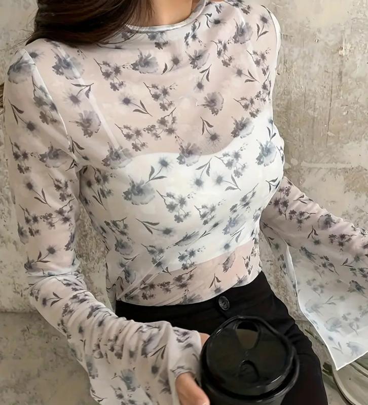 💎Прозрачная кофточка, в цветочный принт, легкая и приятная к телу, с разрезами на рукавах 🦩Размер Xs-S 💸Цена - 280 гривен 🩶В наличии - 2 шт