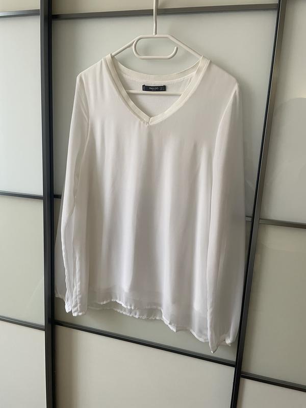 Красивая шифоновая блуза в белом цвете. Состояние идеально. Подойдет на размер с-м. Аккуратная и практичная в носке.