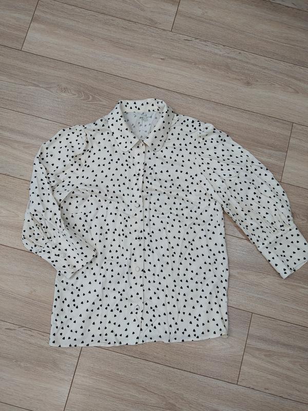 блузка хорошего качества, приятная на ощупь, бежевая в черное сердечко, рукав четвертний, подойдет на размер М, 12. отправлю по любой почте