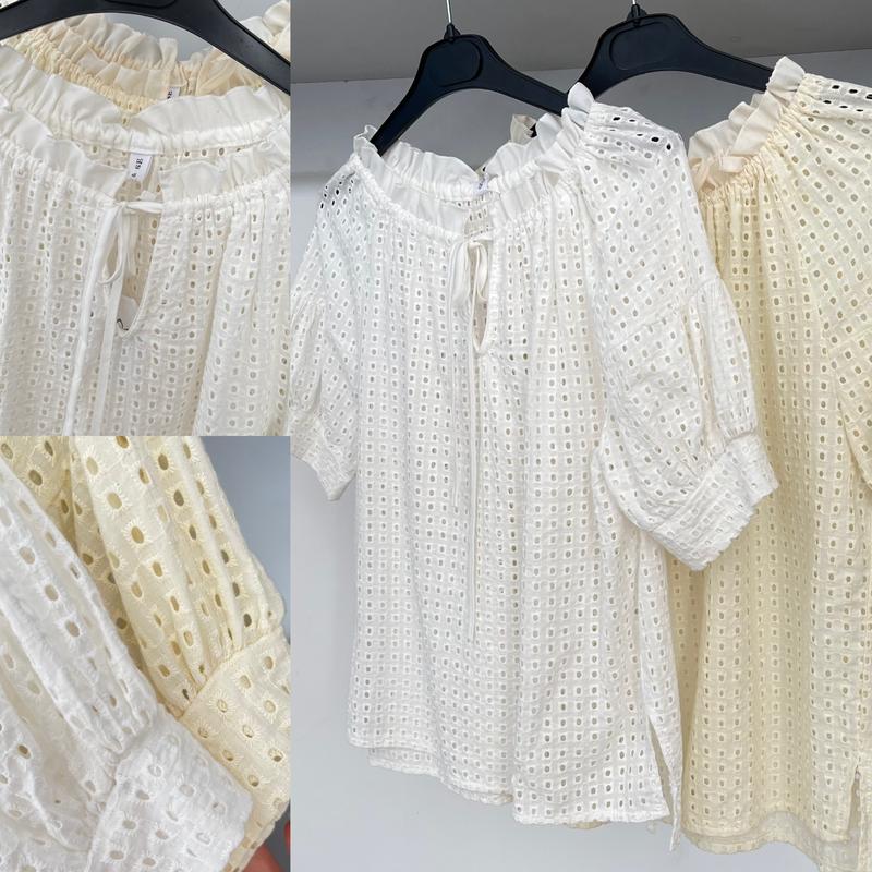 Цена 280грн🔥🔥🔥 Красивые блузы из натуральной прошвы🤍💛 Котон🌸🌸🌸 Два цвета белый и беж Размер универсальный Пог 53, длина 60см