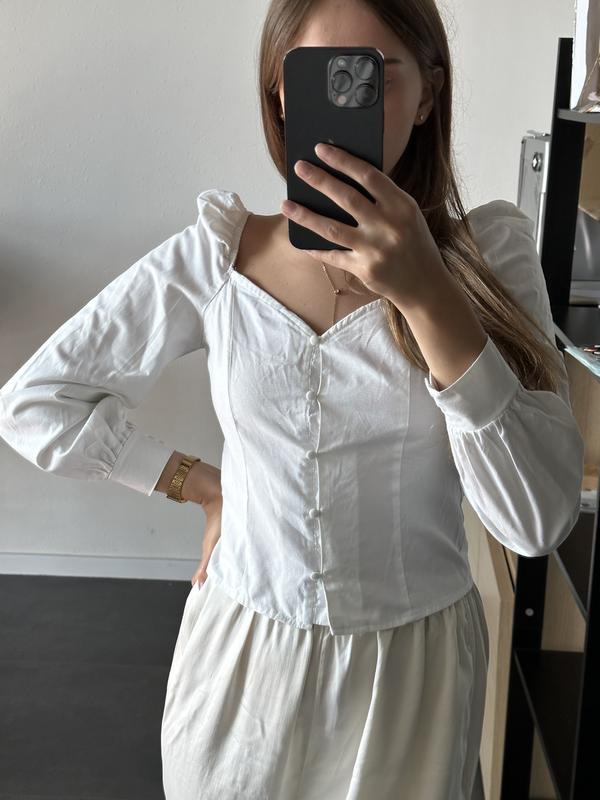 Біла блуза на ґудзиках від бренду Cropp