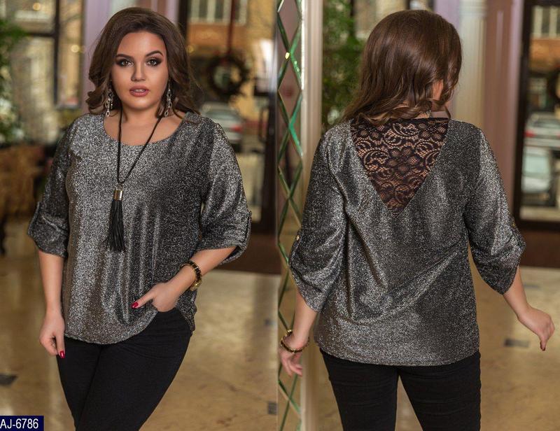 Блуза AJ-6786 Размеры: 48-50, 52-54, 56-58 Блуза №1067. Колір: Рожевий, чорний, фуксія. Тканина про-ва Туреччини: люрекс, гіпюр. блузка, декорована вставкою з гіпюру.