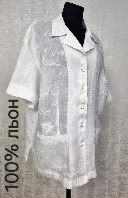 Нарядная блуза-жакет из невероятной красоты тонкого льна, вышитого вискозным шелком. Полуприталенный силуэт. Застежка на пуговицы расположена спереди по центру. Снизу по бокам два накладных кармана. В боковых швах разрезы. Изделие пошито на заказ. Размера отсутствует, ориентируйтесь по замерам. грудь 60 см талия 57 см бедра 64 см+ разрезы рукав 24,5 см длина изделия 69-75 см (перед дольше) плечи 53 см Будет еще много фирменных вещей. Подписывайтесь! Имейте в виду, что пока вы добавляете товар в "выбранный", кто-то его уже покупает. И вы можете уронить свой шанс приобрести понравившуюся вещь. Дешевнее покупать сразу несколько вещей-таким образом вы экономите на доставке. При покупке пятки и больше вещей и оплаты на карту продавцу сразу – доставка бесплатна. Удачных и приятных покупок! 1.08.2024