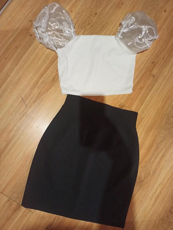 Нарядный топ блуза. Состояние новой вещи. Тканина тягнеться. Рукава стоячи. Замеры по запросу. В продаже топ и юбка. Топ-150 грн юбка -100 грн
