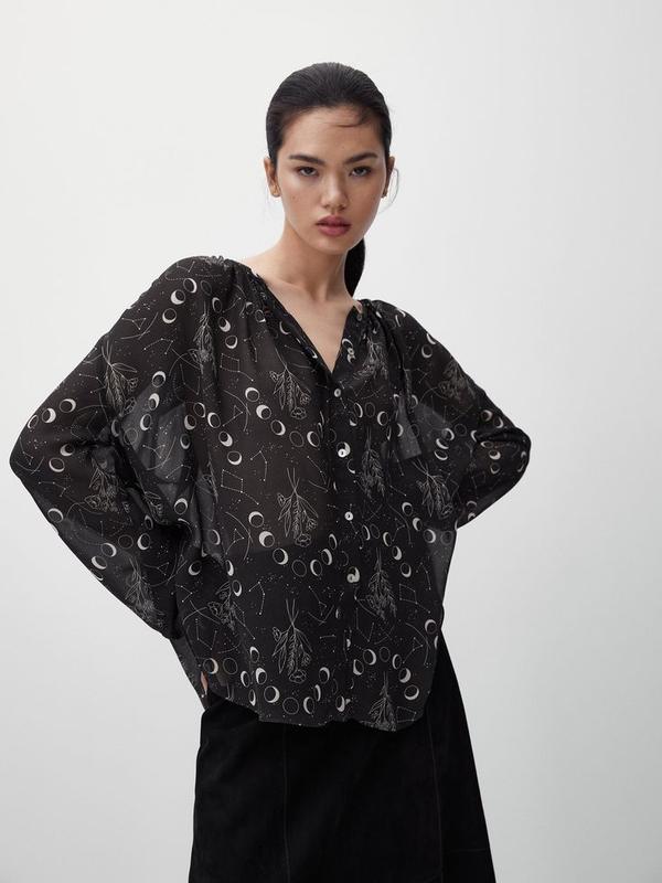 Блуза massimo dutti с фазами луны рубашка рубашка 100% вискоза оверсайз