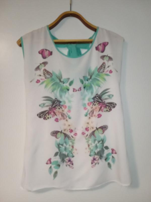 блуза женская белоснежного цвета с бирюзовыми завязками на спине, очень тоненький хлопок,хорошо для жаркой погоды,бу, идеальное состояние,размер M