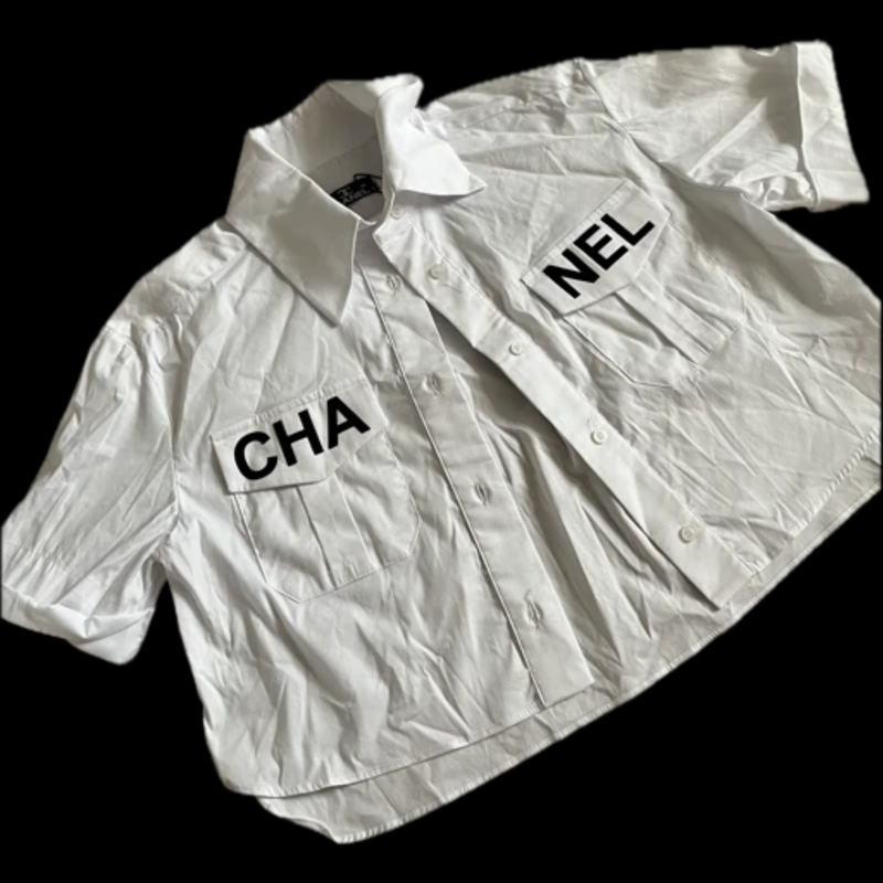 Укороченная блуза с велюровой надписью