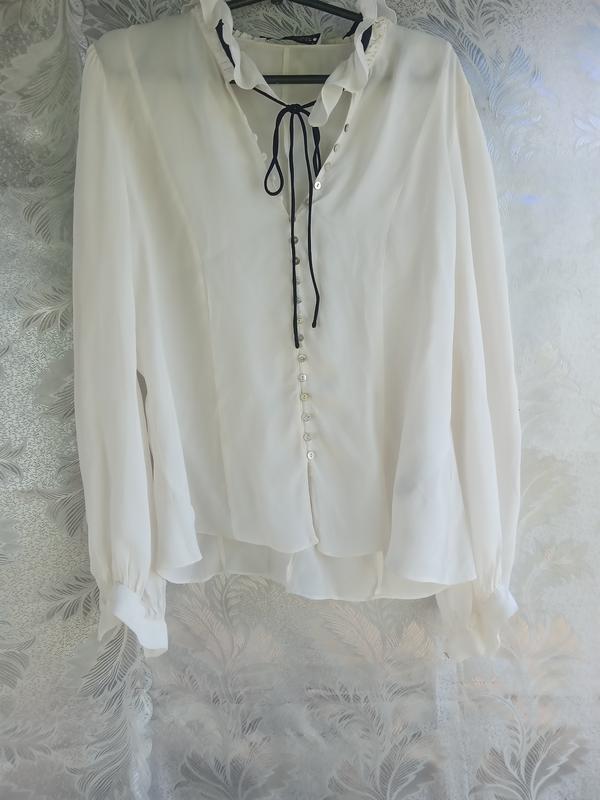 Блуза молочного цвета.р.48.плечи 38.грудь 53.талия сама узкая часть 46.рукав к низу расширен на манжете 62.длина 63.