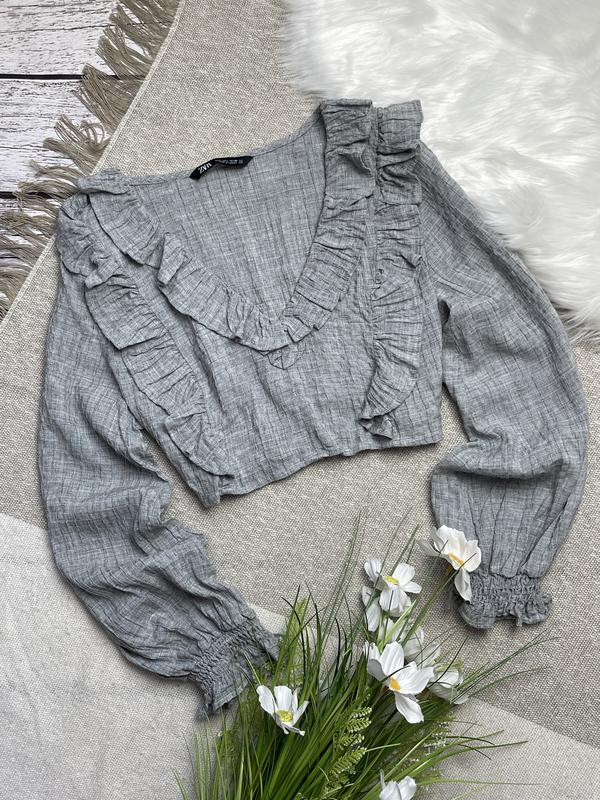 Укороченная блуза ZARA размер Л, состояние идеальный, 82 вискоза, 17 акрил, 1 эластан Д 38, пог 45, рукав 61