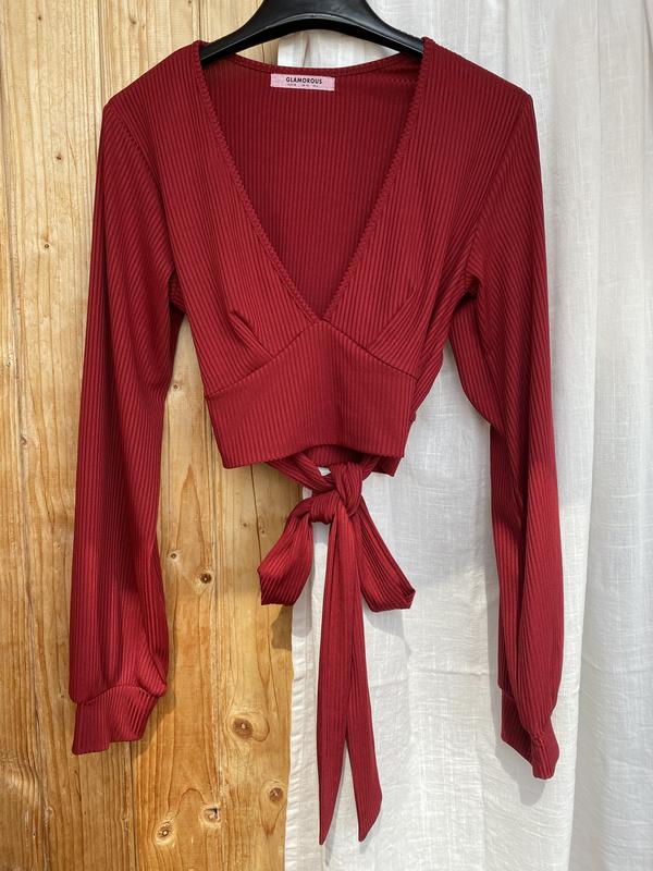 Красива блуза в рубчик, вкорочена, з завʼязками, Чудовий стан Розмір 38/10/6