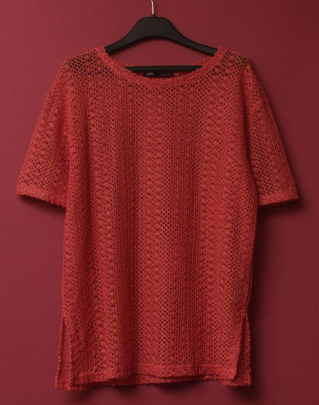 плетенная блуза от ZARA. Плотное но при этом прозрачное сукно. Очень характерная тактильно. Плечи - 52 Подмышки - 53 Длинна - 67