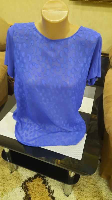 Очень красивого цвета электрик, зарядная,современная блузочка,спинка немного длиннее перед