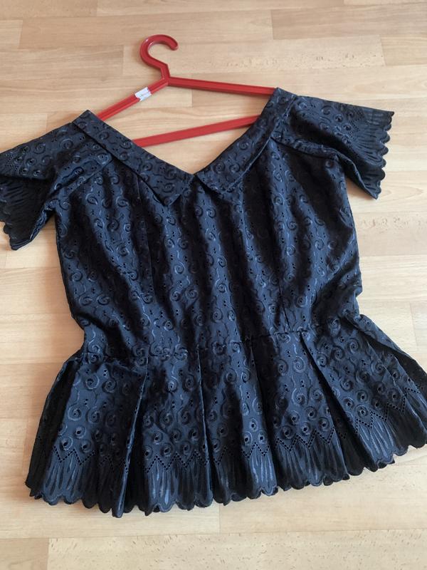 Гаренька блузка, насыщенного, черного цвета Идеальное состояние, без следов ношения Бирки обрезания Размер 12/14, ориентируйтесь на замеры Вверху на подкладке