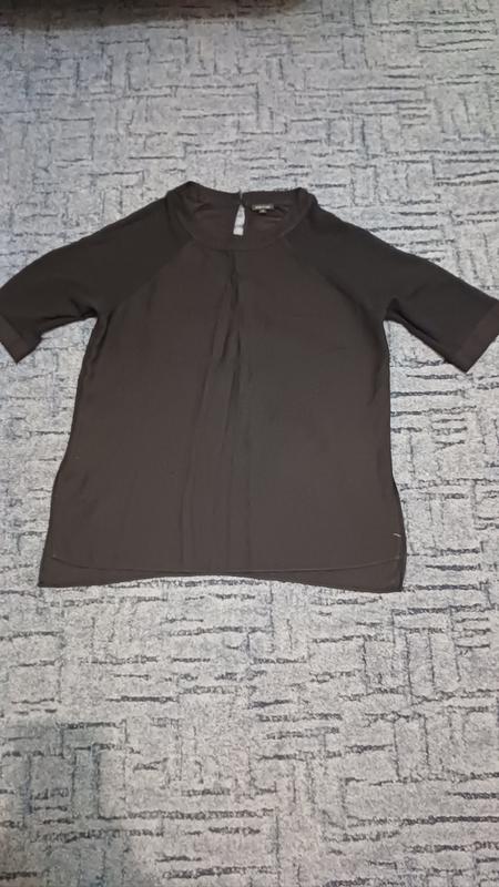 блуза в черном цвете рукав сетка горловина круглая, застегивается на пуговицу сзади по бокам есть небольшие разрезы размер 12