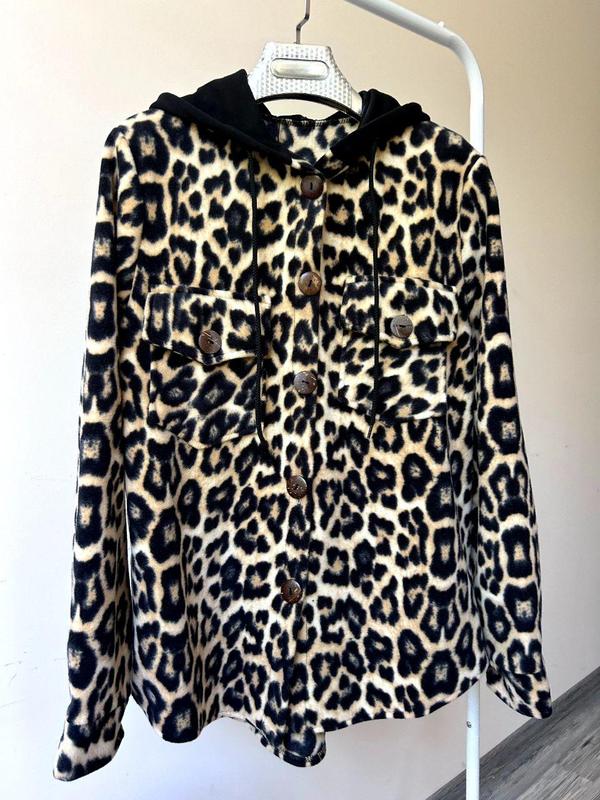 Теплая леопардовая флисовая рубашка с капюшоном от 42 до 52 р.