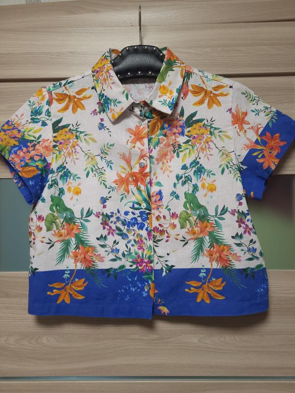 Блузка укороченого крою. В составе лен и катон. Состояние отличное, дефектов нет. Бренд I BLUES. ДОВЖИНА 48, ГРУДИ 48