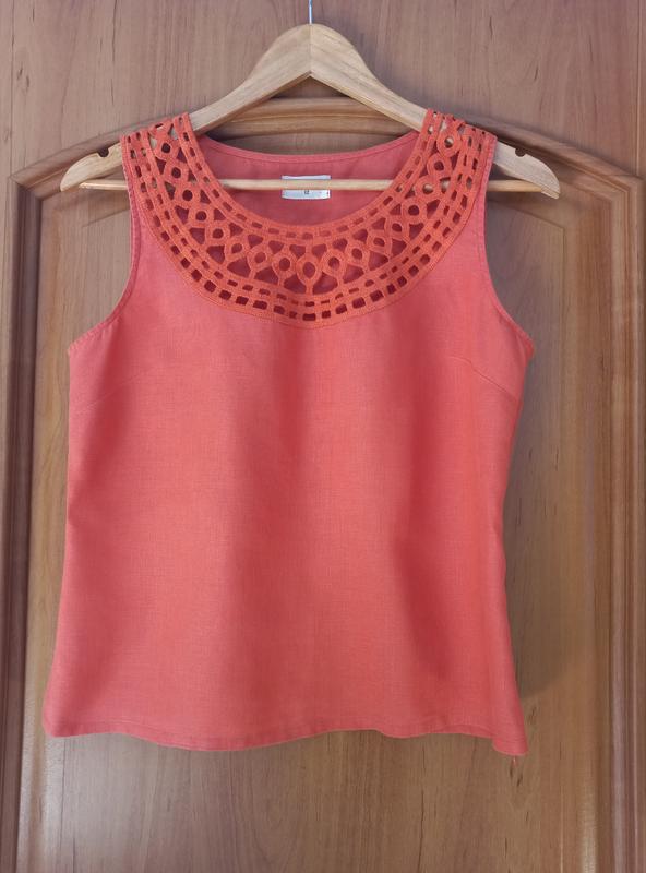 Легкая льняная блуза оранжевого цвета с застежкой-молнией сбоку в идеальном состоянии, размер M-L, замеры: плечи - 33 грудь полуобхват - 47 талия полуобхват - 43 по низу - 47 длина - 54 цвет лучше всего передают два первых фото