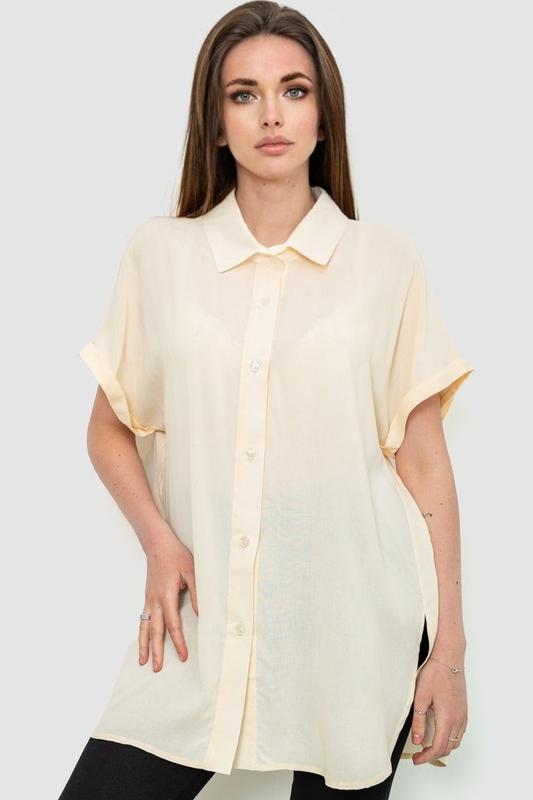 Рубашка женская однотонная на пуговицах, цвет светло-бежевый, 102r5230