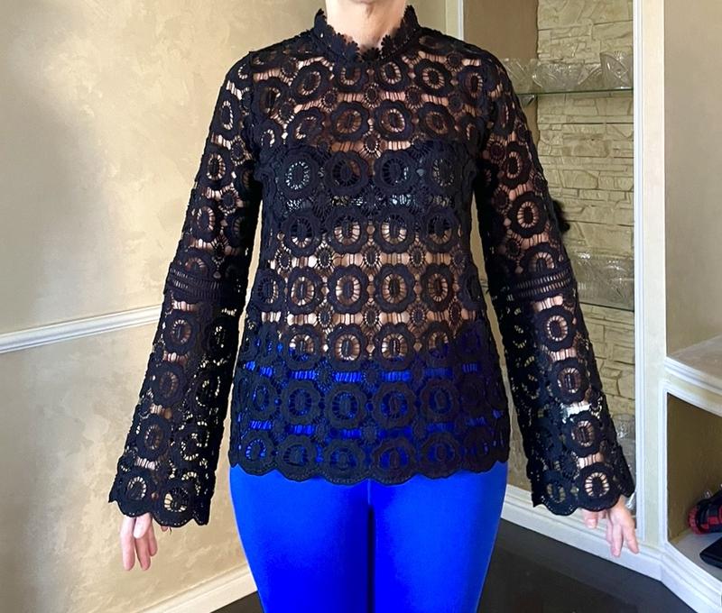 F&F нова чудова блузка. Розмір 12/40. Фото на моделі з розміром S. Довжина 60 см. ПОГ 49 см. Рукав 63 см. Плечі 33 см. Без бірки, сток.