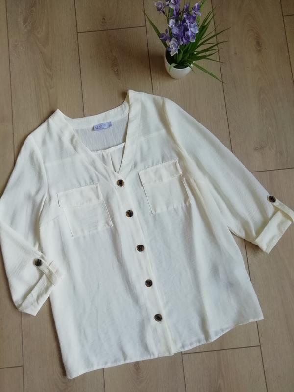 Блуза молочного цвета. Размер указан 12 /L. Ориентируйтесь на замеры. Длина блузки 68 см. Полуобхват груди 49 см. Полуобхват талии 50 см. Полуобхват бёдер 52 см. Плечи 38 см. Длина рукава от плеча 46 см. Состав 100 %полиэстер. Состояние идеальное. Следов носки нет. Фото на теле нет.