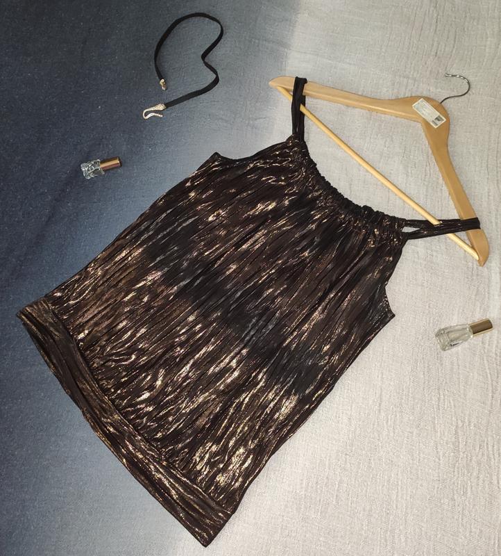 Яркая майка-блуза с эффектом градиента (переливается от бронзового до темно-коричневого цвета в зависимости от освещения). Удобная, без застежек. Переливается за счет самой ткани, без дополнительных блесток (градиент является плавным, на фото, возможно, кажется более резким). Сделает Ваш образ выразительным даже без аксессуаров.