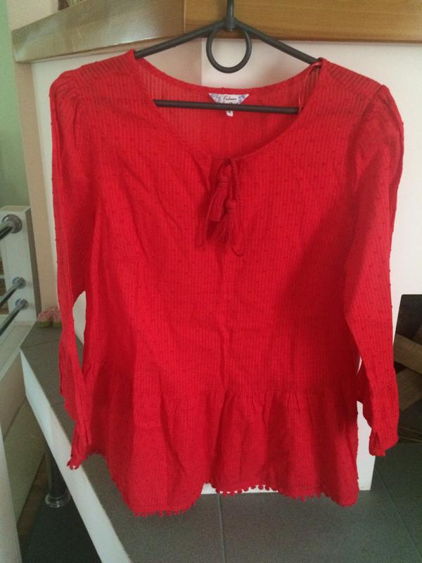 Блуза красного цвета, фирменная, отличного качества.Длина 66 см,ширина по груди 48 см, рукав 48 см, плечи 36 см