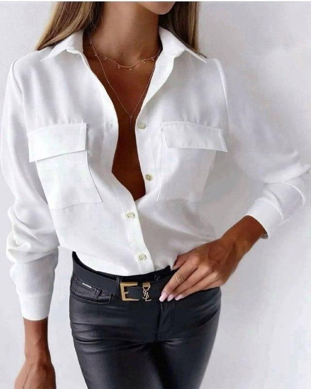 Блузка розмір 42-44,46-48,50-52,54-56 тканина супер софт колір-чорний,бежевий,білий Модна, стильна блузка з кишенями, тканина дуже приємна Виміри гр 42-44-92,46-48-100 Довжина 65см,рукав 65 см гр 50-52-108 см, 54-56-112 см Довжина 67см,рукав 67см