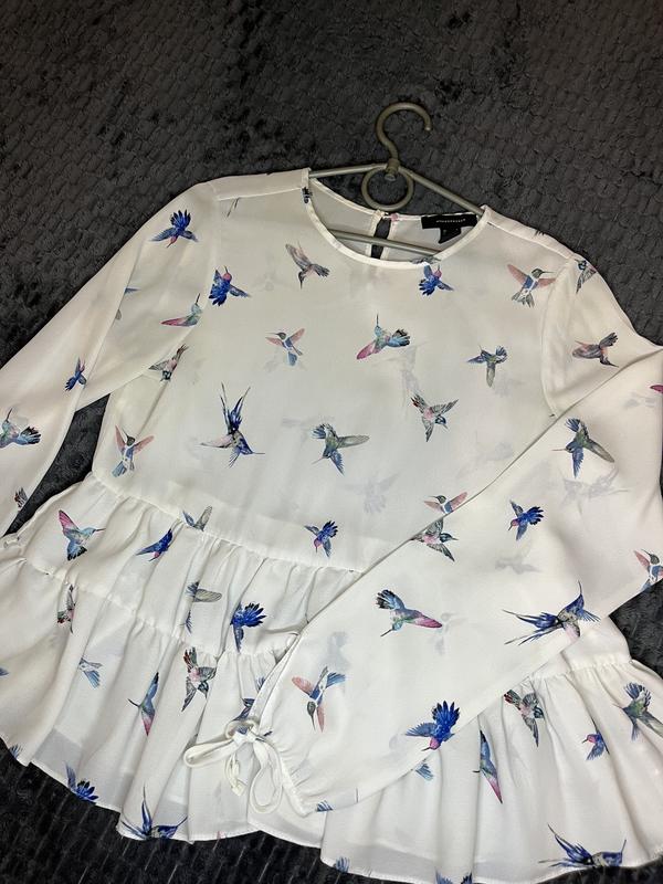 Легкая блуза с принцем колибри, рукава на завязках, размер S-M