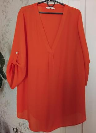 Блуза красивого кораллового цвета.ткань полупрозрачная.свободного кроя. пог-62 поб-65 длина-76. UK-20.EUR-48. подойдет на наш 52-54 размер.
